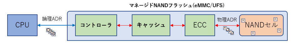 eMMCやUFSなどのマネージドNANDが商品化される以前のベアNANDでは、内部各NANDセルに直接アクセスできたため原則内部各NANDセルの不良状況を確認することができました。したがって、繰返しE/PV試験中に不良率の変化を測定することで仕様に謳われる不良率=寿命を確認することが可能でした。