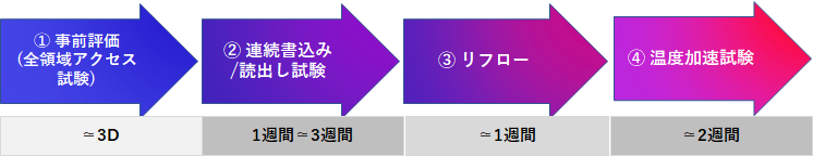 *各試験日数は、対象となるデバイスの書込み/読出し応答速度、メモリ容量により変動します。必ず対象デバイスを明記してご依頼をお願いいたします。